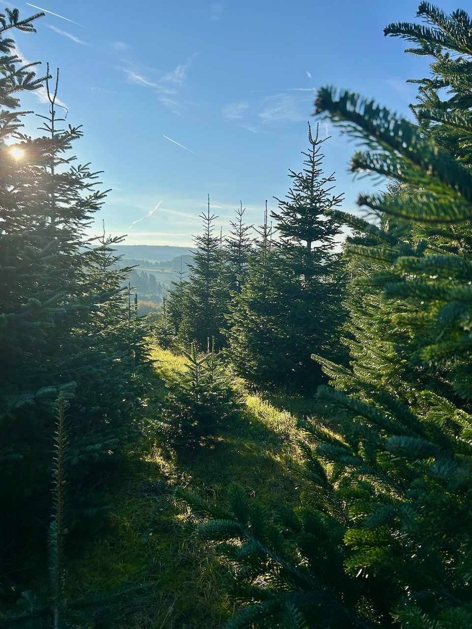 Unsere Bäume wachsen in unserer eigenen Weihnachtsbaumkultur in der Region, ganz ohne Pestizide – natürlich gepflegt von der Familie Bredel.